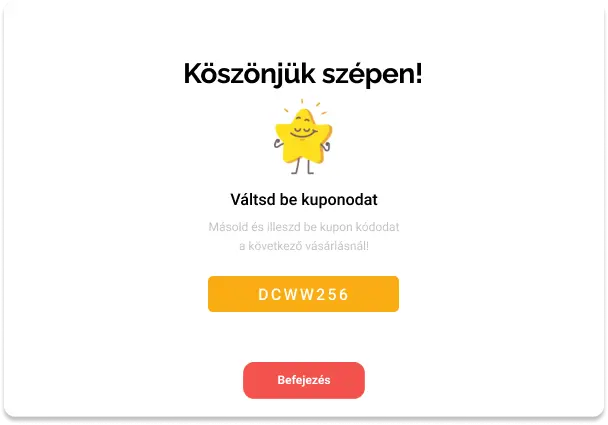 A Proofyban lehetőséged van automatikus kuponkódot adni az értékelést író vásárlóknak. Ez ösztönzi őket a vélemény leadására, és egyben visszacsábítja őket a következő vásárlásra.